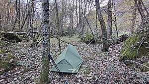 Long night, chilly night ~3-4C° - packing ~9:00 and continue in the shadow, some other spots in the valley had frozen layer over the grass, so it was below 0C° there, once out in the sunlight again ~15-20C° and mild, but in the shadow still chilly.
